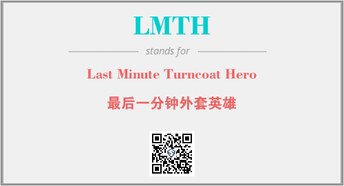 英文缩略词“LMTH”经常作为“Last Minute Turncoat Hero”的英文缩写来使用,中文表示:“最后一分钟外套英雄”。本文将详细介绍英文缩写词LMTH所代表英文单词,其对应的中文拼音、详细解释以及在英语中的流行度。此外,还有关于缩略词LMTH的分类、应用领域及相关应用示例等。