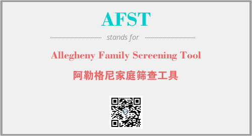 上述内容是“Allegheny Family Screening Tool”作为“AFST”的缩写,解释为“阿勒格尼家庭筛查工具”时的信息,以及英文缩略词AFST所代表的英文单词,其对应的中文拼音、详细解释以及在英文中的流行度和相关分类、应用领域及应用示例等。
