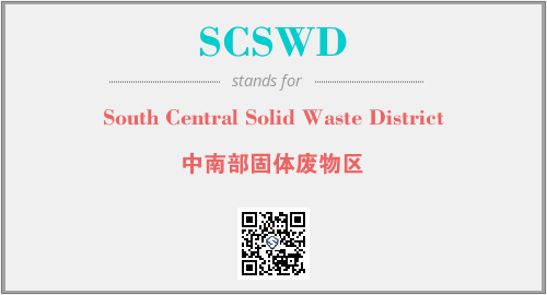 英文缩略词“SCSWD”经常作为“South Central Solid Waste District”的英文缩写来使用,中文表示:“中南部固体废物区”。本文将详细介绍英文缩写词SCSWD所代表英文单词,其对应的中文拼音、详细解释以及在英语中的流行度。此外,还有关于缩略词SCSWD的分类、应用领域及相关应用示例等。