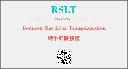上述内容是“Reduced Size Liver Transplantation”作为“RSLT”的缩写,解释为“缩小肝脏移植”时的信息,以及英文缩略词RSLT所代表的英文单词,其对应的中文拼音、详细解释以及在英文中的流行度和相关分类、应用领域及应用示例等。