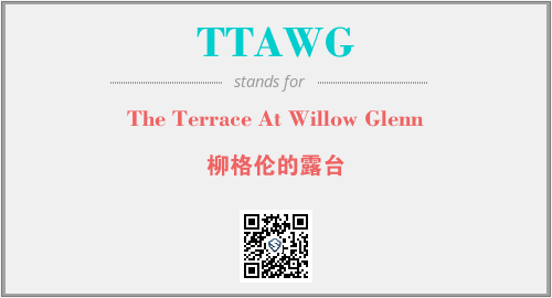 上述内容是“The Terrace At Willow Glenn”作为“TTAWG”的缩写,解释为“柳格伦的露台”时的信息,以及英文缩略词TTAWG所代表的英文单词,其对应的中文拼音、详细解释以及在英文中的流行度和相关分类、应用领域及应用示例等。