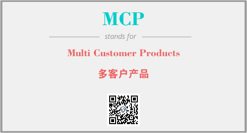 上述内容是“Multi Customer Products”作为“MCP”的缩写,解释为“多客户产品”时的信息,以及英文缩略词MCP所代表的英文单词,其对应的中文拼音、详细解释以及在英文中的流行度和相关分类、应用领域及应用示例等。