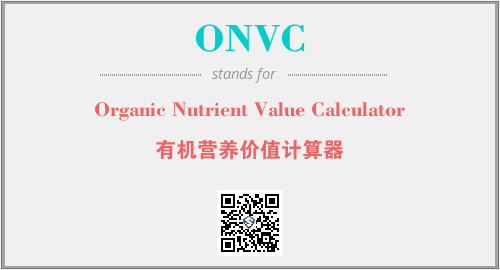以上为Organic Nutrient Value Calculator英文缩略词ONVC的中文解释,以及该英文缩写在英语的流行度、分类和应用领域方面的信息。