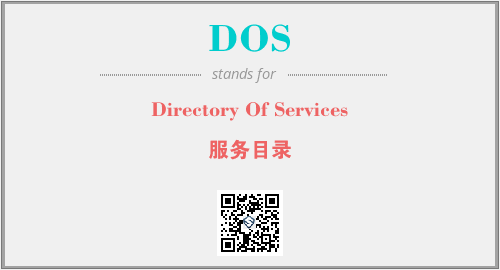 上述内容是“Directory Of Services”作为“DOS”的缩写,解释为“服务目录”时的信息,以及英文缩略词DOS所代表的英文单词,其对应的中文拼音、详细解释以及在英文中的流行度和相关分类、应用领域及应用示例等。