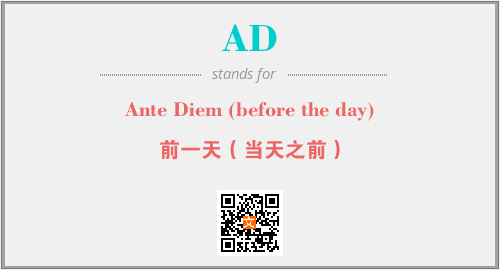 以上为Ante Diem (before the day)英文缩略词AD的中文解释,以及该英文缩写在英语的流行度、分类和应用领域方面的信息。