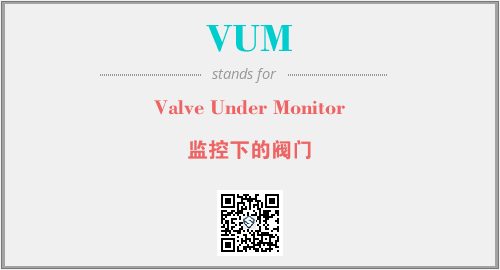 上述内容是“Valve Under Monitor”作为“VUM”的缩写,解释为“监控下的阀门”时的信息,以及英文缩略词VUM所代表的英文单词,其对应的中文拼音、详细解释以及在英文中的流行度和相关分类、应用领域及应用示例等。