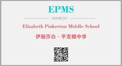 上述内容是“Elizabeth Pinkerton Middle School”作为“EPMS”的缩写,解释为“伊丽莎白·平克顿中学”时的信息,以及英文缩略词EPMS所代表的英文单词,其对应的中文拼音、详细解释以及在英文中的流行度和相关分类、应用领域及应用示例等。