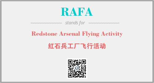 以上为Redstone Arsenal Flying Activity英文缩略词RAFA的中文解释,以及该英文缩写在英语的流行度、分类和应用领域方面的信息。