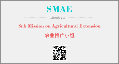 上述内容是“Sub Mission on Agricultural Extension”作为“SMAE”的缩写,解释为“农业推广小组”时的信息,以及英文缩略词SMAE所代表的英文单词,其对应的中文拼音、详细解释以及在英文中的流行度和相关分类、应用领域及应用示例等。