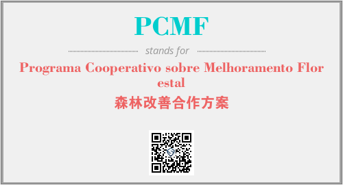 上述内容是“Programa Cooperativo sobre Melhoramento Florestal”作为“PCMF”的缩写,解释为“森林改善合作方案”时的信息,以及英文缩略词PCMF所代表的英文单词,其对应的中文拼音、详细解释以及在英文中的流行度和相关分类、应用领域及应用示例等。