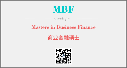 上述内容是“Masters in Business Finance”作为“MBF”的缩写,解释为“商业金融硕士”时的信息,以及英文缩略词MBF所代表的英文单词,其对应的中文拼音、详细解释以及在英文中的流行度和相关分类、应用领域及应用示例等。