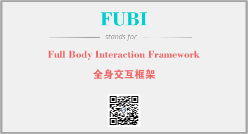 上述内容是“Full Body Interaction Framework”作为“FUBI”的缩写,解释为“全身交互框架”时的信息,以及英文缩略词FUBI所代表的英文单词,其对应的中文拼音、详细解释以及在英文中的流行度和相关分类、应用领域及应用示例等。