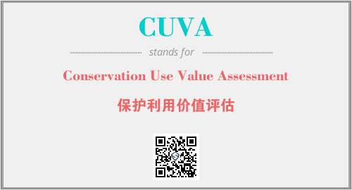 上述内容是“Conservation Use Value Assessment”作为“CUVA”的缩写,解释为“保护利用价值评估”时的信息,以及英文缩略词CUVA所代表的英文单词,其对应的中文拼音、详细解释以及在英文中的流行度和相关分类、应用领域及应用示例等。