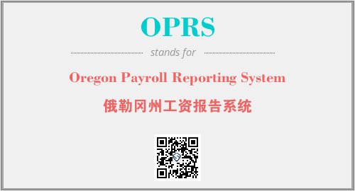 上述内容是“Oregon Payroll Reporting System”作为“OPRS”的缩写,解释为“俄勒冈州工资报告系统”时的信息,以及英文缩略词OPRS所代表的英文单词,其对应的中文拼音、详细解释以及在英文中的流行度和相关分类、应用领域及应用示例等。