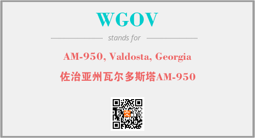 上述内容是“AM-950, Valdosta, Georgia”作为“WGOV”的缩写,解释为“佐治亚州瓦尔多斯塔AM-950”时的信息,以及英文缩略词WGOV所代表的英文单词,其对应的中文拼音、详细解释以及在英文中的流行度和相关分类、应用领域及应用示例等。
