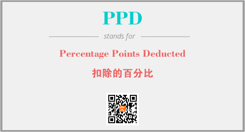 以上为Percentage Points Deducted英文缩略词PPD的中文解释,以及该英文缩写在英语的流行度、分类和应用领域方面的信息。