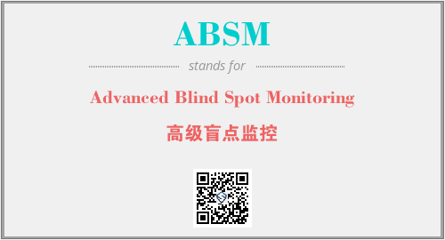 上述内容是“Advanced Blind Spot Monitoring”作为“ABSM”的缩写,解释为“高级盲点监控”时的信息,以及英文缩略词ABSM所代表的英文单词,其对应的中文拼音、详细解释以及在英文中的流行度和相关分类、应用领域及应用示例等。