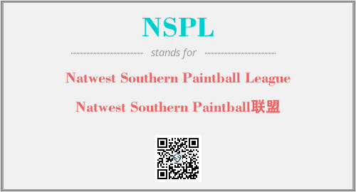 英文缩略词“NSPL”经常作为“Natwest Southern Paintball League”的英文缩写来使用,中文表示:“Natwest Southern Paintball联盟”。本文将详细介绍英文缩写词NSPL所代表英文单词,其对应的中文拼音、详细解释以及在英语中的流行度。此外,还有关于缩略词NSPL的分类、应用领域及相关应用示例等。