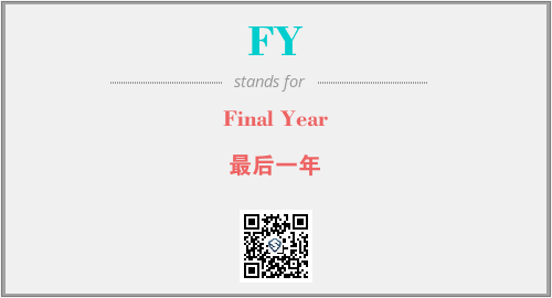 上述内容是“Final Year”作为“FY”的缩写,解释为“最后一年”时的信息,以及英文缩略词FY所代表的英文单词,其对应的中文拼音、详细解释以及在英文中的流行度和相关分类、应用领域及应用示例等。