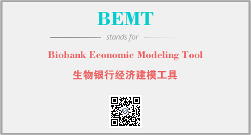 英文缩略词“BEMT”经常作为“Biobank Economic Modeling Tool”的英文缩写来使用,中文表示:“生物银行经济建模工具”。本文将详细介绍英文缩写词BEMT所代表英文单词,其对应的中文拼音、详细解释以及在英语中的流行度。此外,还有关于缩略词BEMT的分类、应用领域及相关应用示例等。