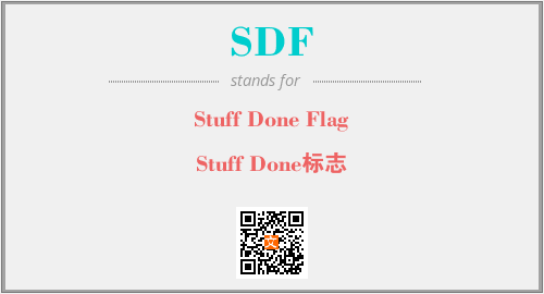 上述内容是“Stuff Done Flag”作为“SDF”的缩写,解释为“Stuff Done标志”时的信息,以及英文缩略词SDF所代表的英文单词,其对应的中文拼音、详细解释以及在英文中的流行度和相关分类、应用领域及应用示例等。