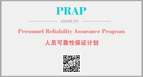 上述内容是“Personnel Reliability Assurance Program”作为“PRAP”的缩写,解释为“人员可靠性保证计划”时的信息,以及英文缩略词PRAP所代表的英文单词,其对应的中文拼音、详细解释以及在英文中的流行度和相关分类、应用领域及应用示例等。