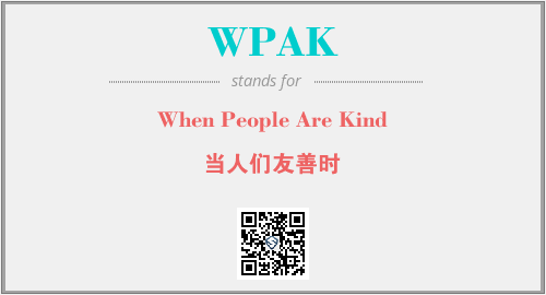 上述内容是“When People Are Kind”作为“WPAK”的缩写,解释为“当人们友善时”时的信息,以及英文缩略词WPAK所代表的英文单词,其对应的中文拼音、详细解释以及在英文中的流行度和相关分类、应用领域及应用示例等。