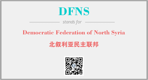 上述内容是“Democratic Federation of North Syria”作为“DFNS”的缩写,解释为“北叙利亚民主联邦”时的信息,以及英文缩略词DFNS所代表的英文单词,其对应的中文拼音、详细解释以及在英文中的流行度和相关分类、应用领域及应用示例等。