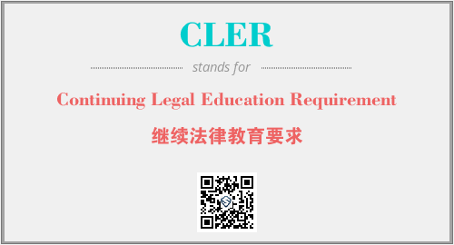 上述内容是“Continuing Legal Education Requirement”作为“CLER”的缩写,解释为“继续法律教育要求”时的信息,以及英文缩略词CLER所代表的英文单词,其对应的中文拼音、详细解释以及在英文中的流行度和相关分类、应用领域及应用示例等。