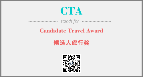 以上为Candidate Travel Award英文缩略词CTA的中文解释,以及该英文缩写在英语的流行度、分类和应用领域方面的信息。