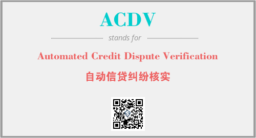 英文缩略词“ACDV”经常作为“Automated Credit Dispute Verification”的英文缩写来使用,中文表示:“自动信贷纠纷核实”。本文将详细介绍英文缩写词ACDV所代表英文单词,其对应的中文拼音、详细解释以及在英语中的流行度。此外,还有关于缩略词ACDV的分类、应用领域及相关应用示例等。