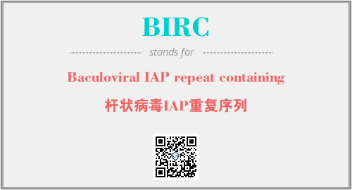 上述内容是“Baculoviral IAP repeat containing”作为“BIRC”的缩写,解释为“杆状病毒IAP重复序列”时的信息,以及英文缩略词BIRC所代表的英文单词,其对应的中文拼音、详细解释以及在英文中的流行度和相关分类、应用领域及应用示例等。