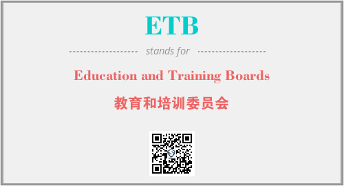 英文缩略词“ETB”经常作为“Education and Training Boards”的英文缩写来使用,中文表示:“教育和培训委员会”。本文将详细介绍英文缩写词ETB所代表英文单词,其对应的中文拼音、详细解释以及在英语中的流行度。此外,还有关于缩略词ETB的分类、应用领域及相关应用示例等。