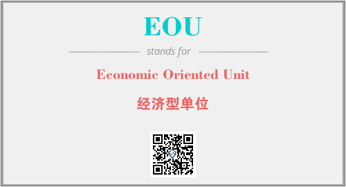 英文缩略词“EOU”经常作为“Economic Oriented Unit”的英文缩写来使用,中文表示:“经济型单位”。本文将详细介绍英文缩写词EOU所代表英文单词,其对应的中文拼音、详细解释以及在英语中的流行度。此外,还有关于缩略词EOU的分类、应用领域及相关应用示例等。