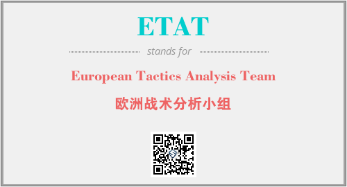 以上为European Tactics Analysis Team英文缩略词ETAT的中文解释,以及该英文缩写在英语的流行度、分类和应用领域方面的信息。
