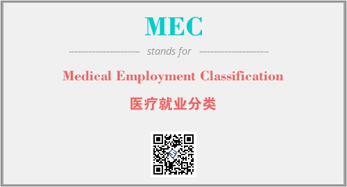 上述内容是“Medical Employment Classification”作为“MEC”的缩写,解释为“医疗就业分类”时的信息,以及英文缩略词MEC所代表的英文单词,其对应的中文拼音、详细解释以及在英文中的流行度和相关分类、应用领域及应用示例等。