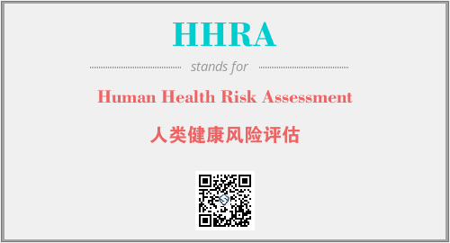 上述内容是“Human Health Risk Assessment”作为“HHRA”的缩写,解释为“人类健康风险评估”时的信息,以及英文缩略词HHRA所代表的英文单词,其对应的中文拼音、详细解释以及在英文中的流行度和相关分类、应用领域及应用示例等。