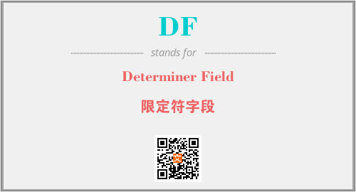 上述内容是“Determiner Field”作为“DF”的缩写,解释为“限定符字段”时的信息,以及英文缩略词DF所代表的英文单词,其对应的中文拼音、详细解释以及在英文中的流行度和相关分类、应用领域及应用示例等。