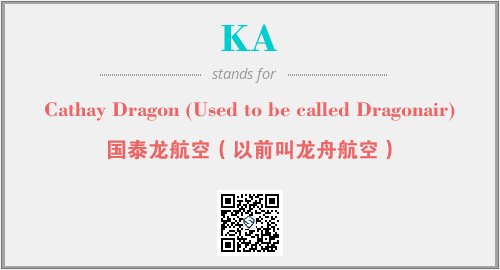 英文缩略词“KA”经常作为“Cathay Dragon (Used to be called Dragonair)”的英文缩写来使用,中文表示:“国泰龙航空(以前叫龙舟航空)”。本文将详细介绍英文缩写词KA所代表英文单词,其对应的中文拼音、详细解释以及在英语中的流行度。此外,还有关于缩略词KA的分类、应用领域及相关应用示例等。