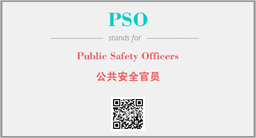 上述内容是“Public Safety Officers”作为“PSO”的缩写,解释为“公共安全官员”时的信息,以及英文缩略词PSO所代表的英文单词,其对应的中文拼音、详细解释以及在英文中的流行度和相关分类、应用领域及应用示例等。
