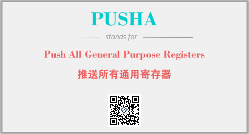 英文缩略词“PUSHA”经常作为“Push All General Purpose Registers”的英文缩写来使用,中文表示:“推送所有通用寄存器”。本文将详细介绍英文缩写词PUSHA所代表英文单词,其对应的中文拼音、详细解释以及在英语中的流行度。此外,还有关于缩略词PUSHA的分类、应用领域及相关应用示例等。
