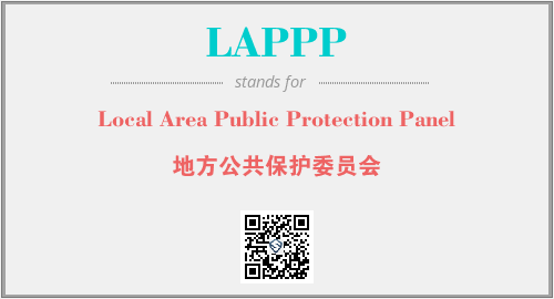 上述内容是“Local Area Public Protection Panel”作为“LAPPP”的缩写,解释为“地方公共保护委员会”时的信息,以及英文缩略词LAPPP所代表的英文单词,其对应的中文拼音、详细解释以及在英文中的流行度和相关分类、应用领域及应用示例等。