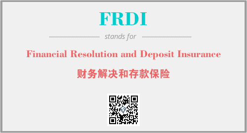 上述内容是“Financial Resolution and Deposit Insurance”作为“FRDI”的缩写,解释为“财务解决和存款保险”时的信息,以及英文缩略词FRDI所代表的英文单词,其对应的中文拼音、详细解释以及在英文中的流行度和相关分类、应用领域及应用示例等。