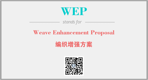 上述内容是“Weave Enhancement Proposal”作为“WEP”的缩写,解释为“编织增强方案”时的信息,以及英文缩略词WEP所代表的英文单词,其对应的中文拼音、详细解释以及在英文中的流行度和相关分类、应用领域及应用示例等。