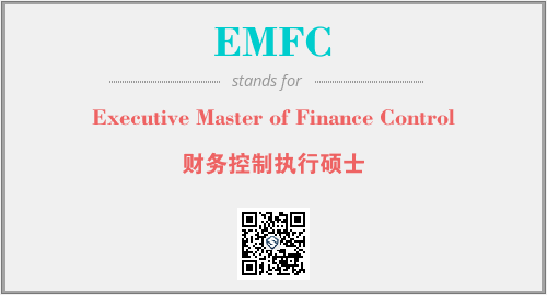 上述内容是“Executive Master of Finance Control”作为“EMFC”的缩写,解释为“财务控制执行硕士”时的信息,以及英文缩略词EMFC所代表的英文单词,其对应的中文拼音、详细解释以及在英文中的流行度和相关分类、应用领域及应用示例等。