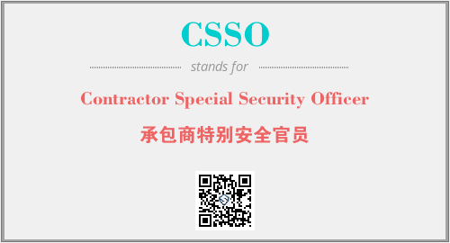 上述内容是“Contractor Special Security Officer”作为“CSSO”的缩写,解释为“承包商特别安全官员”时的信息,以及英文缩略词CSSO所代表的英文单词,其对应的中文拼音、详细解释以及在英文中的流行度和相关分类、应用领域及应用示例等。