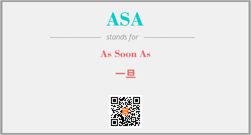 英文缩略词“ASA”经常作为“As Soon As”的英文缩写来使用,中文表示:“一旦”。本文将详细介绍英文缩写词ASA所代表英文单词,其对应的中文拼音、详细解释以及在英语中的流行度。此外,还有关于缩略词ASA的分类、应用领域及相关应用示例等。