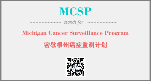 上述内容是“Michigan Cancer Surveillance Program”作为“MCSP”的缩写,解释为“密歇根州癌症监测计划”时的信息,以及英文缩略词MCSP所代表的英文单词,其对应的中文拼音、详细解释以及在英文中的流行度和相关分类、应用领域及应用示例等。
