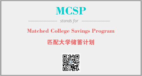 上述内容是“Matched College Savings Program”作为“MCSP”的缩写,解释为“匹配大学储蓄计划”时的信息,以及英文缩略词MCSP所代表的英文单词,其对应的中文拼音、详细解释以及在英文中的流行度和相关分类、应用领域及应用示例等。