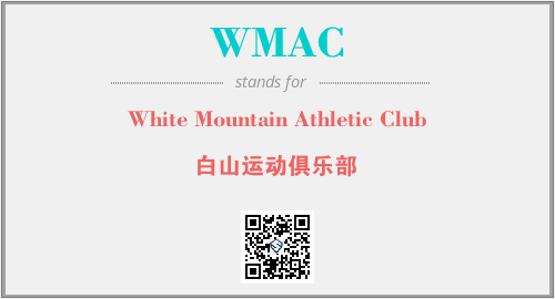 以上为White Mountain Athletic Club英文缩略词WMAC的中文解释,以及该英文缩写在英语的流行度、分类和应用领域方面的信息。